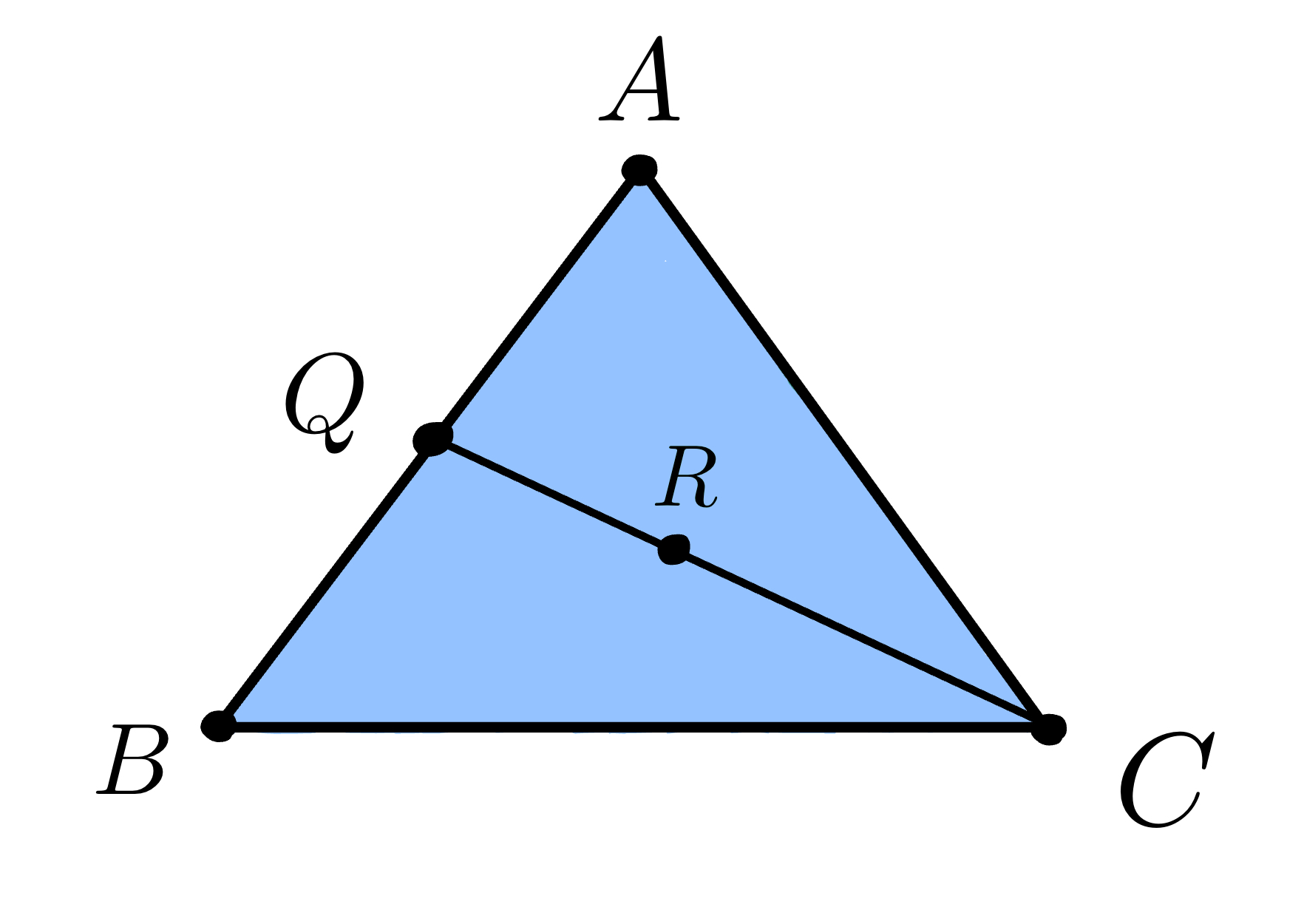Since \(R\) is an arbitrary point inside the triangle \(ABC\), we can generalize the equation to any point \(P\). That is, any point \(P\) inside the triangle \(ABC\) has the form
